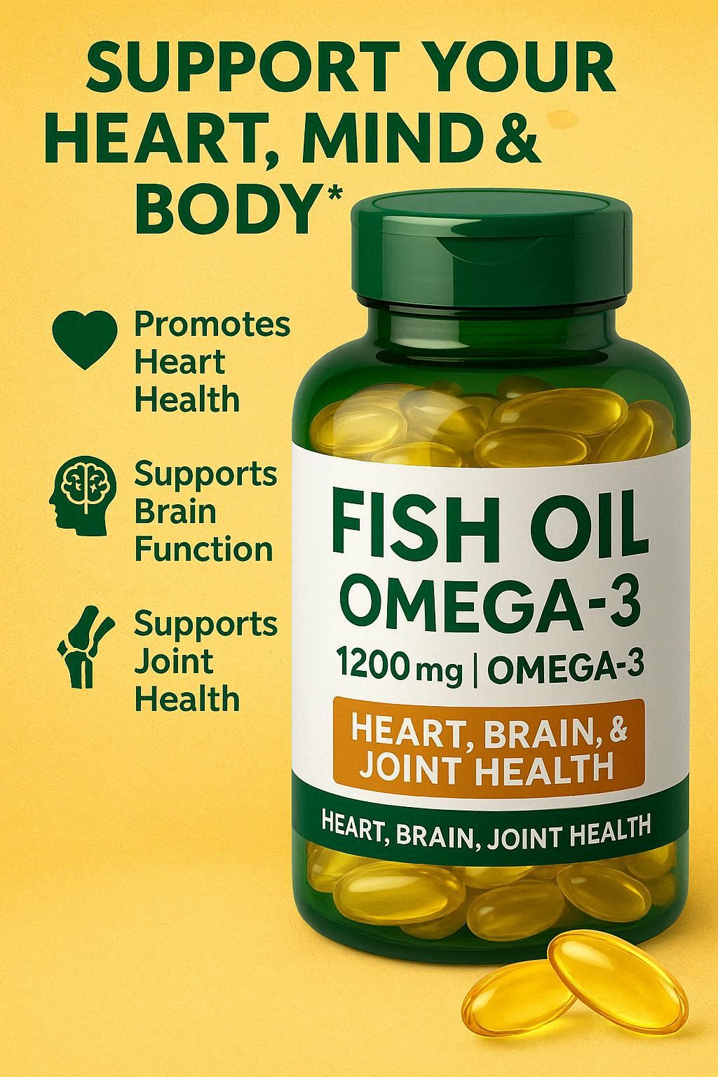- Dosage: 1,000–2,000 mg/day (combined EPA/DHA).